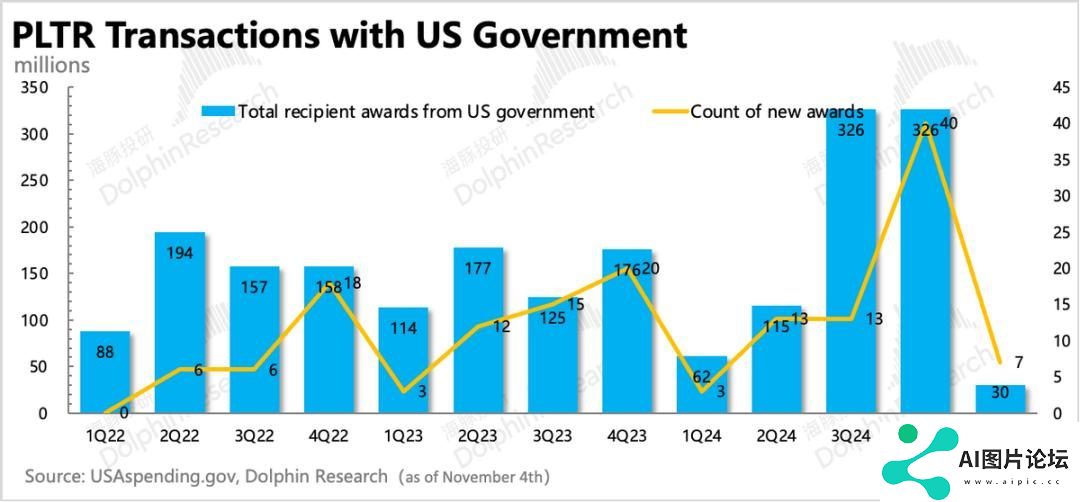 结合<1-4>,海豚君认为,当下客户端对Palantir的产品仍然非常感兴趣且合作意愿较高,但可能出于假期扰动或产品变化更迭较快等考虑,短期确定的有效订单增量略微走弱,但并不能说明Palantir的产品优势发生了改变。