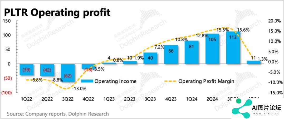 上季度海豚君预判控费周期已过,虽然Q4 Palantir确实进一步增加了开支(剔除SBC),但增速上看,从Q3的7%增长到Q4的15%,实际上也属于一个适度扩张。因此也没有给利润率带来太大的压力,继续靠着收入高增长提升。